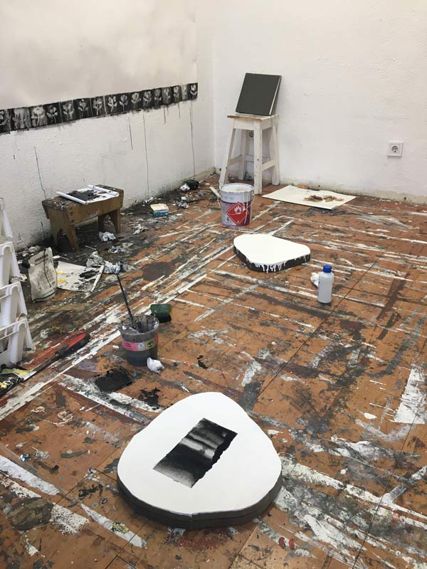 Sempre tive um processo de trabalho mais intuitivo, de aprender com o fazer e com os materiais. Nas Caldas tive esse espaço para explorar essa forma de fazer. Aí já tinha um estúdio, o que é uma grande diferença. É até revolucionário para a tua prática, ter um espaço que é o teu espaço e o teu laboratório de experiências. Assim podes desenvolver o que queiras e a teu tempo. Dá-te asas para falhares e resolveres e refazeres até chegares onde quiseres.