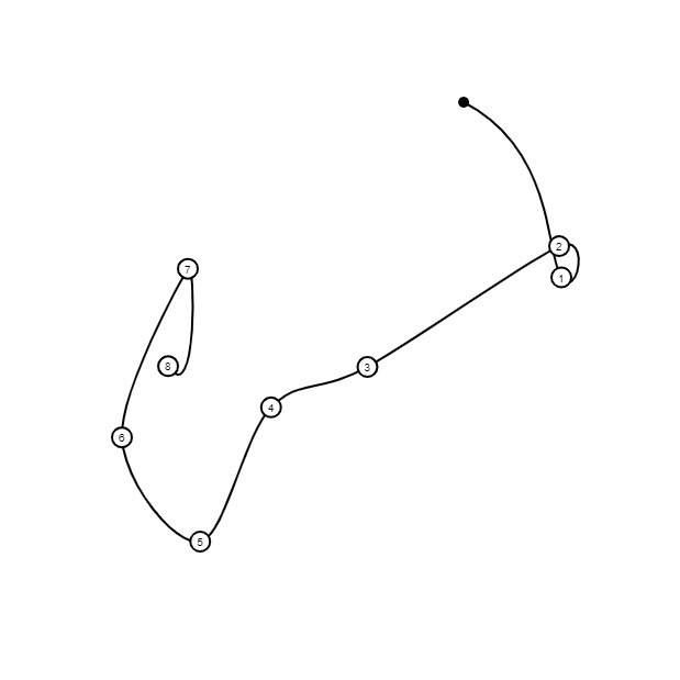 É dado com a partitura, um esquema de deslocação espacial e uma imagem que se trata de uma composição gráfica de todas estas indicações.