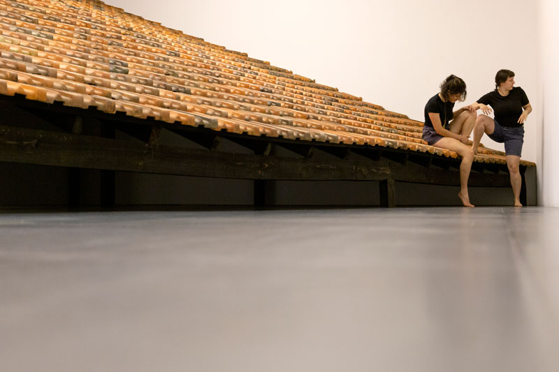 Também houve interacções com dinâmicas de peso; colocamos o corpo em lugares onde existiu uma aproximação à possibilidade de esmagamento, ou à sensação dessa possibilidade. Essa experiência criou uma nova intensidade com as relações escultóricas de peso.