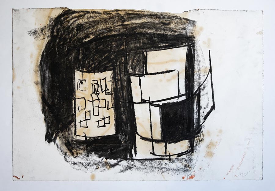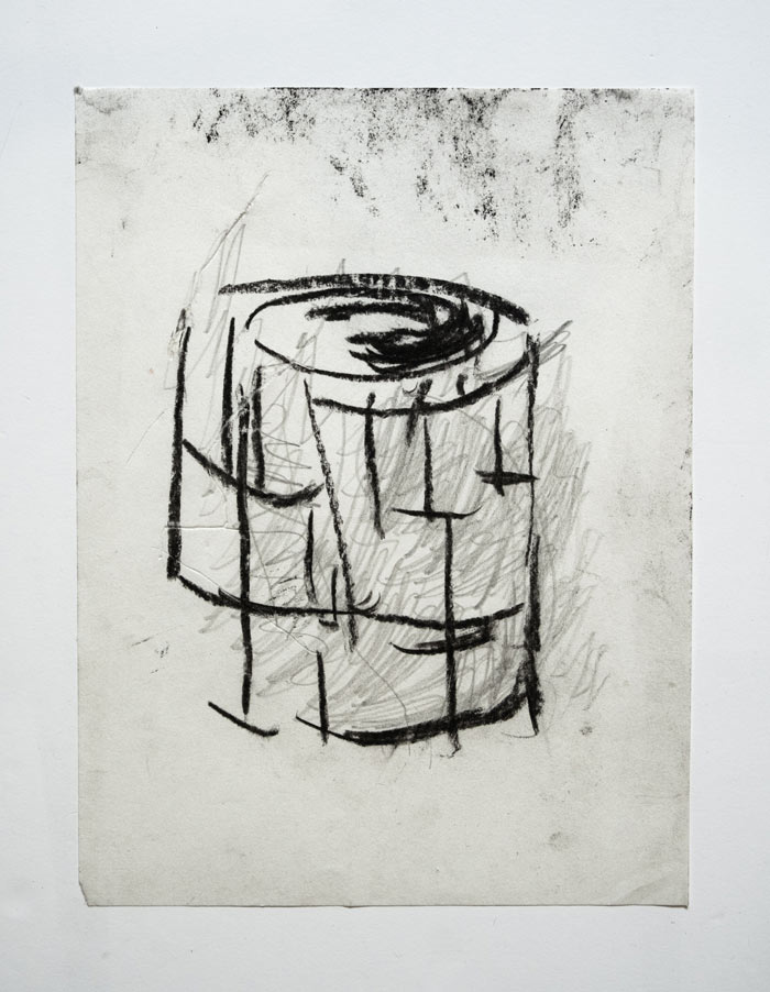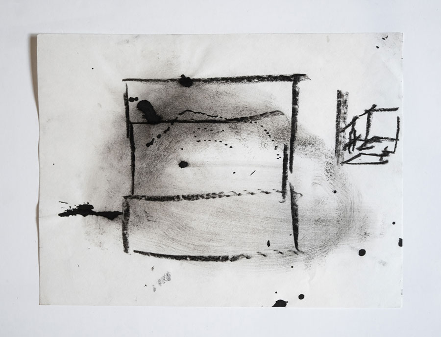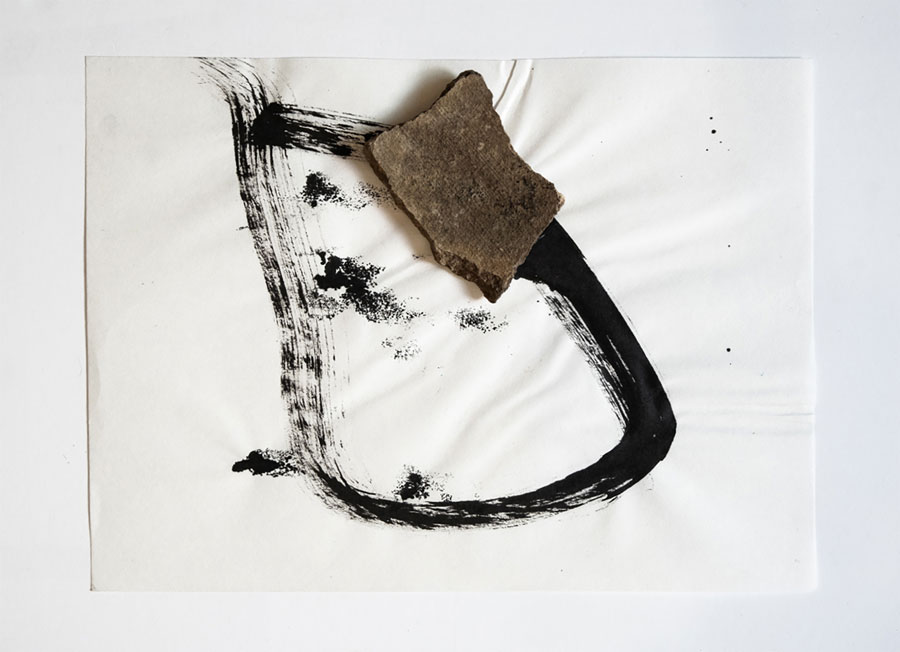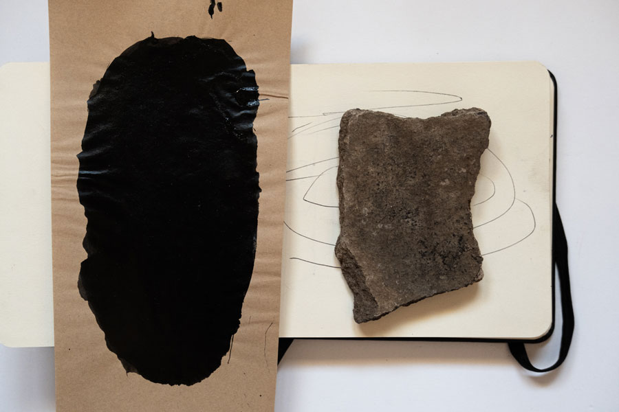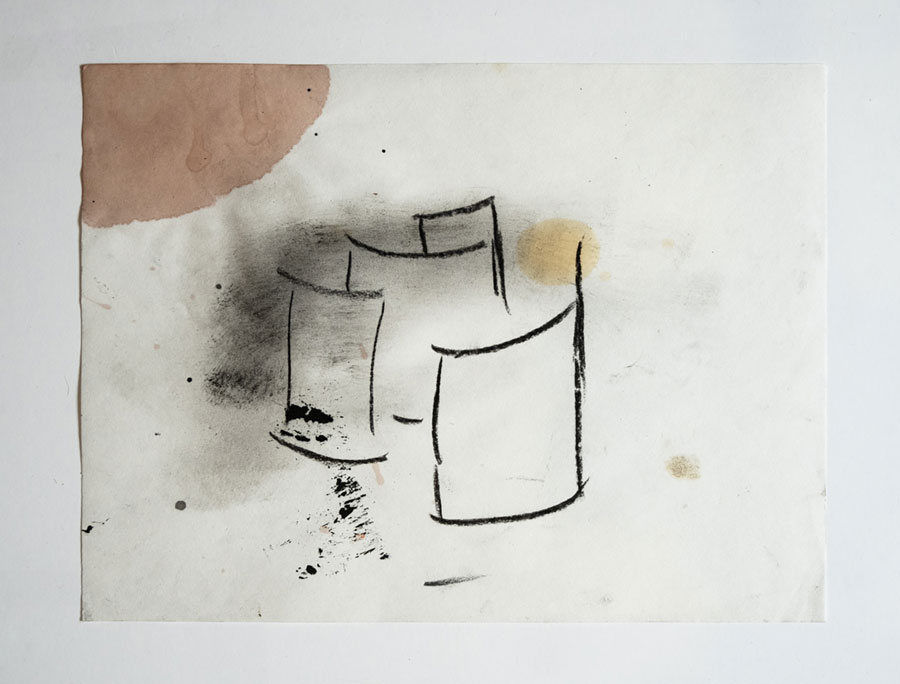 João Gomes Gago: Desde o primeiro momento que recebi aqueles fragmentos de cerâmica para analisar, achei que a ideia seria ampla. Talvez me tenha interessado inicialmente por aspetos de fragilidade, fisicalidade e temporalidade daquele material. Mas ali ficaram, uns largos meses, no meu atelier, como objetos estáticos… A verdade é que eu não me estava a conectar com aqueles cacos, mas lembrava-me visualmente deles e sentia-os como algo ausente. Como matérias distantes! Queria fazer algo com aquilo, enquanto imaginava no papel arquiteturas vernaculares de tempos antigos. Essas visões opacas resultaram numa reunião de factos, entre séries de desenhos exploratórios. Era simples, mas era extremo ao mesmo tempo! Alguns desses ensaios visuais pareciam abrir uma espécie de janela de tempo. O ponto originário destas imersões já nada correspondiam à minha ideia simples e prática de diálogo… Era uma sensação de vazio, mas essa estranheza contradizia com uma vontade de querer alcançar algo, que voltava sempre a perder! Foi então aí que percebi que estava preso num deambular cíclico… Nasceu uma espécie de narrativa fenomenológica, ao que em fotografia se poderia aproximar de um olhar paradoxal, através da atenção e da perceção. Os cacos daquela cerâmica, a que os arqueólogos chamam de “comum”, e que pisamos quando visitamos sítios, reconduziram-me à ideia de que também o lixo contemporâneo terá um futuro parecido! Essa ideia acabou por ritualizar o meu próprio processo criativo e o resultado foi o “diário arqueológico”.