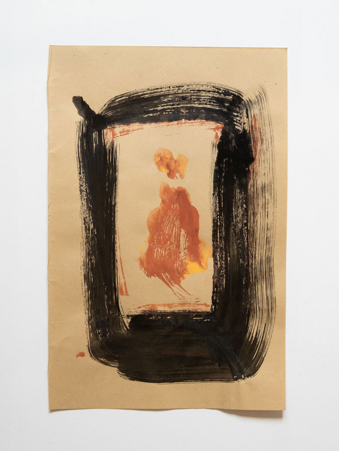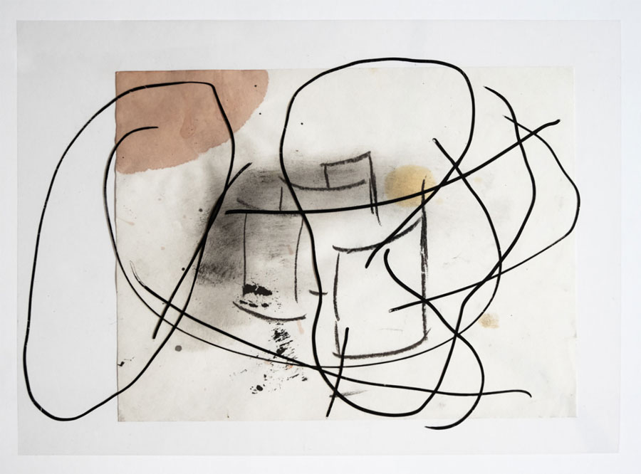 João Gomes Gago: Todos os meus trabalhos assinalaram momentos-chave importantes para mim enquanto artista, fazendo parte de um processo contínuo. Eu acho que estas etapas de exposição não se encerram em si mesmas, porque mais tarde posso voltar a um processo específico, um trabalho, ou uma série que tinha deixado de parte e que olho novamente com outro olhar... Por exemplo, a série “Sombras”, de 2018, foi mostrada em diferentes contextos expositivos. Esse projeto recuperava uma técnica antiga da fotogravura, utilizando tinta litográfica em papel fotossensível e, nesse núcleo, explorava um léxico com formas simples que anulavam zonas do papel através de uma mancha negra. Recentemente, fiz uso - não desses trabalhos originais - mas dos estudos que fiz na altura para a sua conceção! Tratavam-se de folhas de acetato pintadas a pastel de óleo negro, com as quais experimentava composições sobre diversos suportes. Ou seja, pude retomar a estes registos pela sua qualidade de transferência da mancha, originando novas descobertas e ensaios visuais.