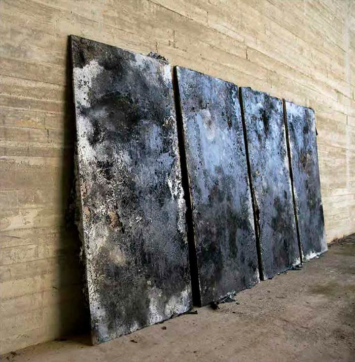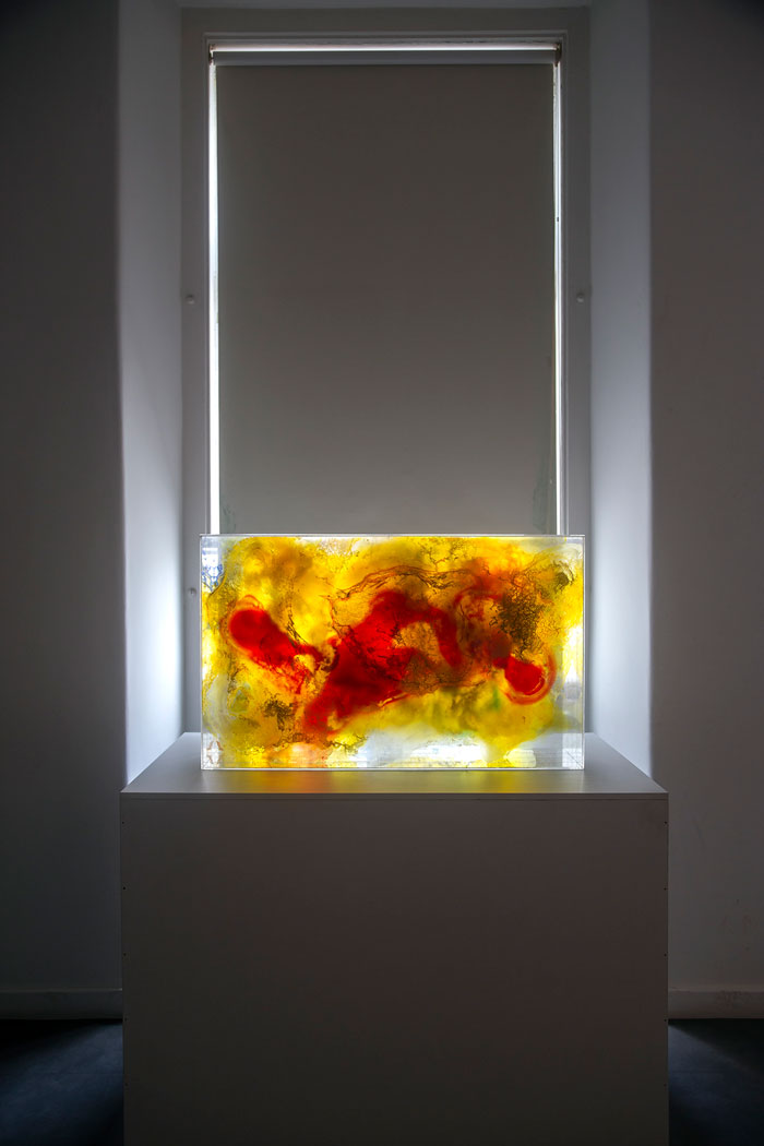 Comecei por fazer peças de grande formato, muito materiais e pesadas, e nos últimos dias acabei por fazê-las apenas com um pouco de pigmento e alguma resina sobre acrílico. A minha pintura tornou-se nua. A luz que atravessava a cor e as sombras que se produziam eram as próprias peças. Sempre acreditei que, na arte, quanto mais peso ou densidade se introduz no objecto, mais leveza se produz nele, e foi exatamente isso que produziu essa paisagem nas minhas obras.
