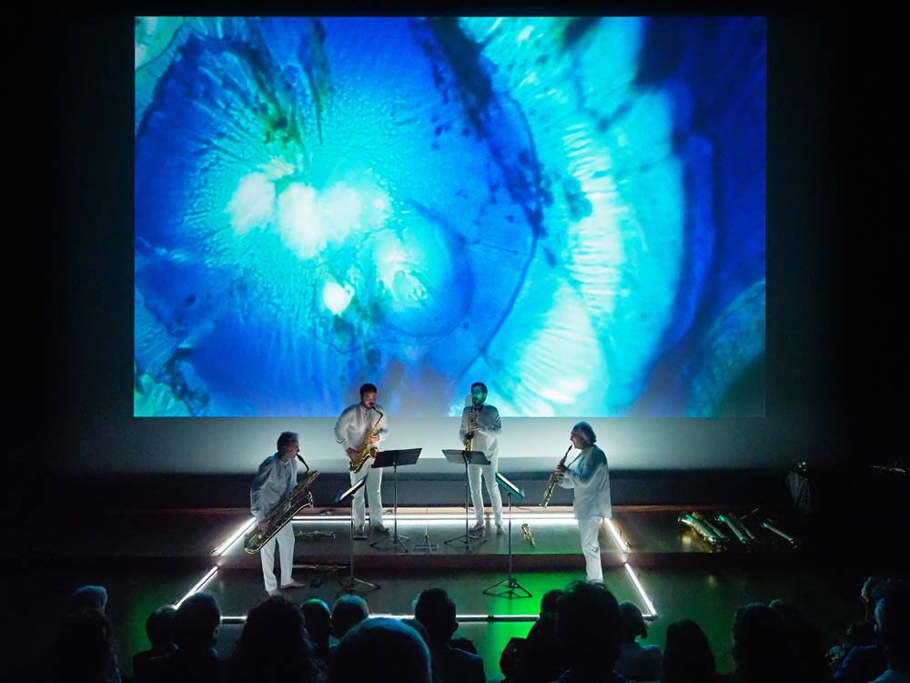 CB: Estas colaborações surgiram depois de ter começado a utilizar o retroprojector como suporte para a pintura. Foi uma ideia que surgiu em Lisboa, durante a minha estadia em 2011, e que foi evoluindo ao longo dos anos. A primeira acção ao vivo que fiz com o Sigma Project Quartet foi no festival Jazzaldia em San Sebastián em 2015, e continuámos a relação com concertos como os do Kursaal em San Sebastián, ou no Círculo de Bellas Artes ou na Fundación Juan March em Madrid. Neles, estamos à procura do sonho de fundir todas as artes naquele momento.