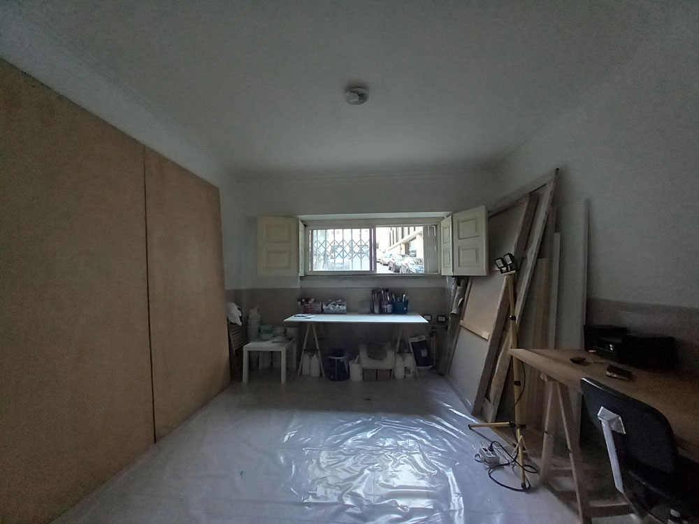 LV: O facto dos teus ateliers serem espaços fisicamente tão distintos influi de algum modo no teu trabalho artístico? Não me refiro apenas às possibilidades técnicas que cada um permite/limita, mas mesmo a nível conceptual, sentes que há processos criativos distintos que preferes fazer em cada um deles?