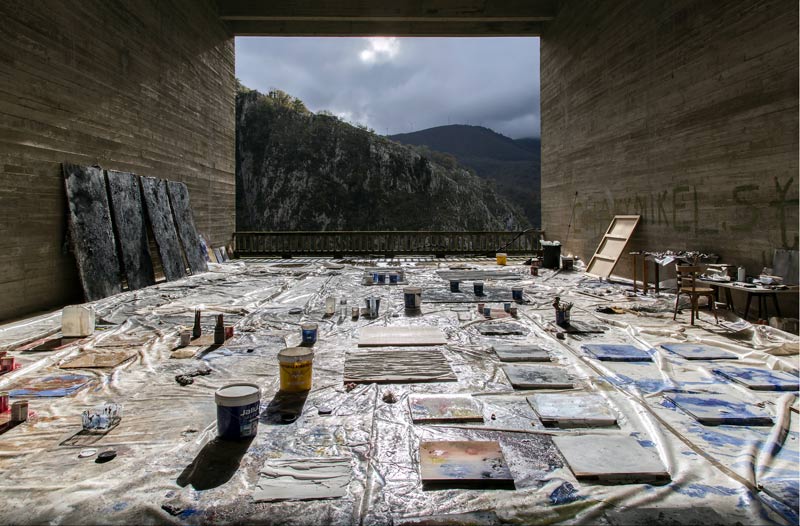 LV: A propósito de espaços de trabalho e de como influenciam a criação artística, realizaste em 2016 uma residência em “Las Catedrales” de Arantzazu, da qual resultou o teu projecto “Rituales del imaginario” (2016). Sobre essa residência, afirmaste que a paisagem era tão espectacular que “atravessou” as obras concebidas. A tua pintura é claramente uma investigação sobre o que é a matéria e o que é a luz. O que é que aquele local potenciou a esse respeito?